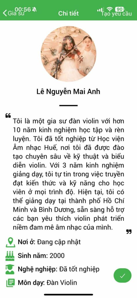 XEM PROFILE DANH SÁCH GIA SƯ DẠY ĐÀN VIOLIN TẠI ĐÂY – XEM THÊM