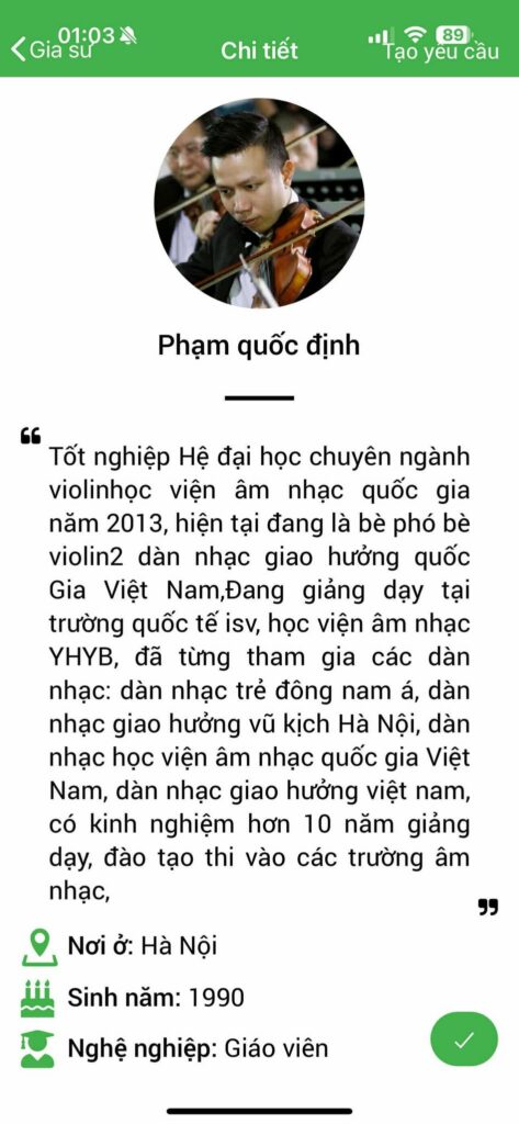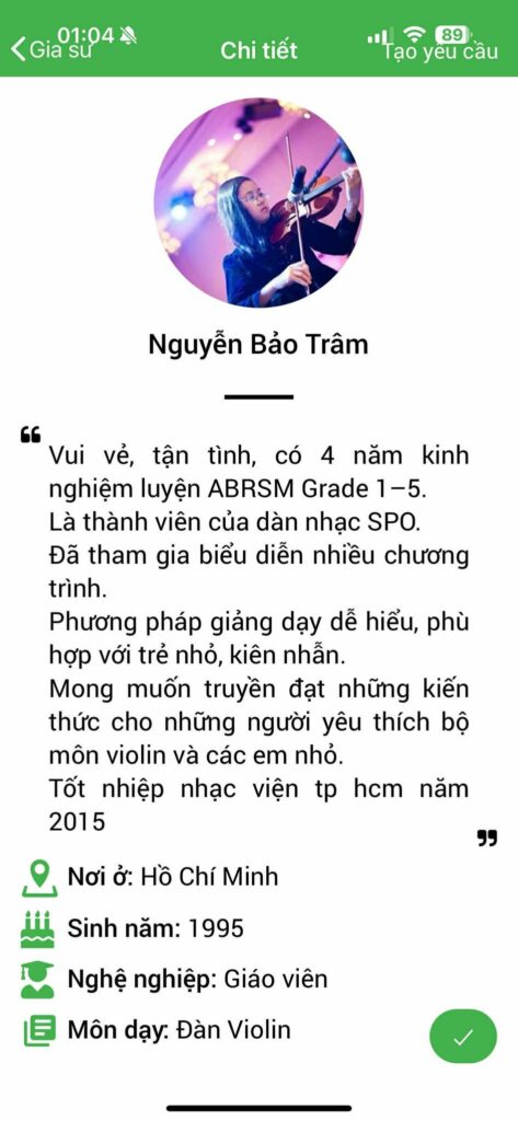 XEM PROFILE DANH SÁCH GIA SƯ DẠY ĐÀN VIOLIN TẠI ĐÂY – XEM THÊM