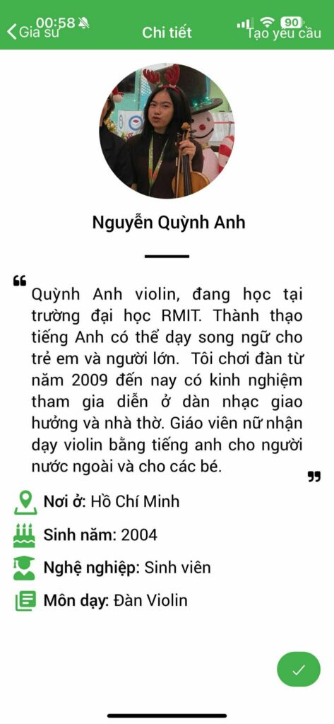 XEM PROFILE DANH SÁCH GIA SƯ DẠY ĐÀN VIOLIN TẠI ĐÂY – XEM THÊM