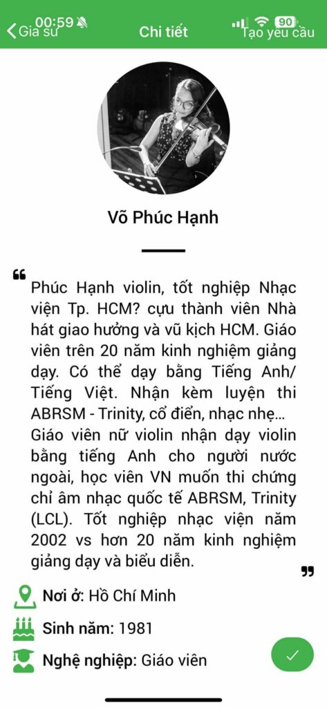 XEM PROFILE DANH SÁCH GIA SƯ DẠY ĐÀN VIOLIN TẠI ĐÂY – XEM THÊM